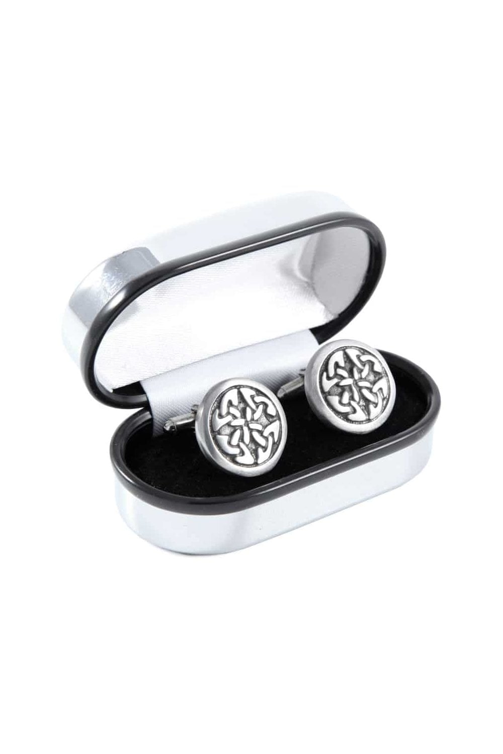 These cufflinks are handcrafted from lead-free pewter in Scotland, featuring a Celtic knot design which is a symbol of eternity.
