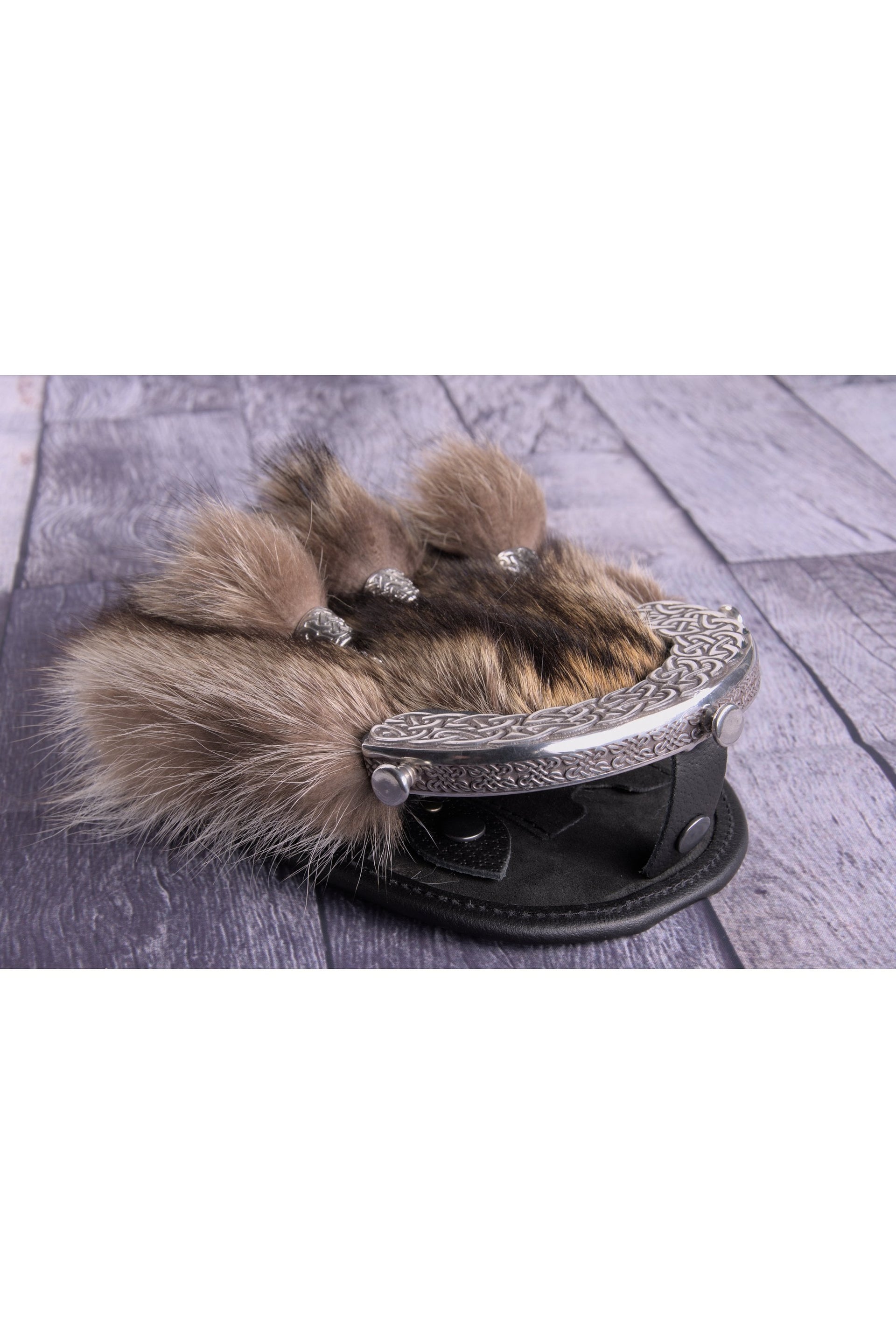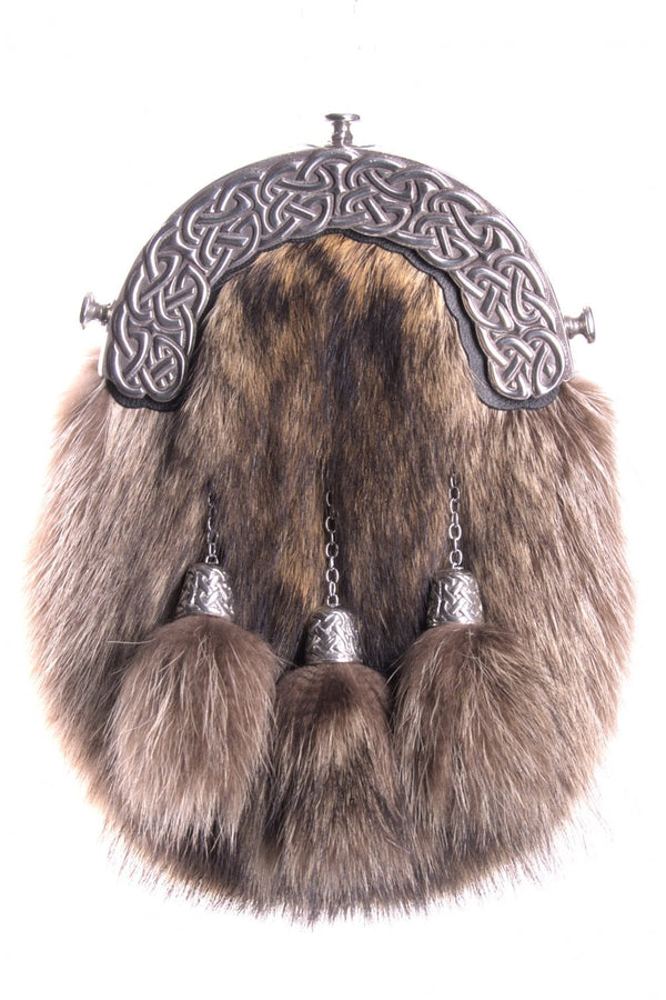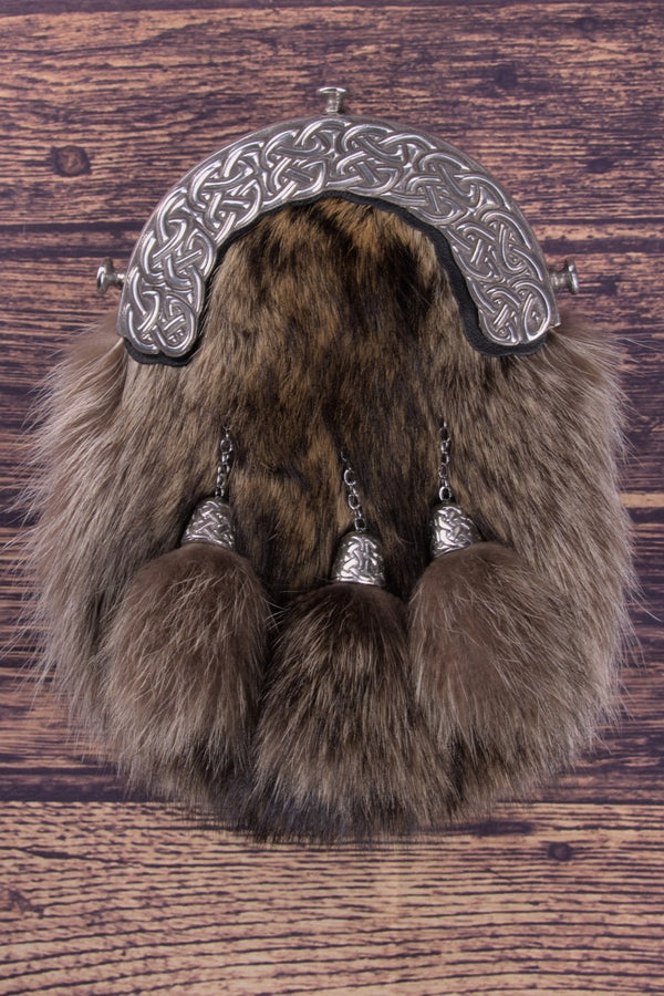 Noteworthy for its luxurious textured appearance, the sporran boasts a genuine, ethically sourced natural racoon fur exterior – delivering an unmatched combination of softness, durability, and visual appeal. Encased within this opulent fur is a suede lining, ensuring that your sporran remains a testament to unparalleled attention to detail and quality.