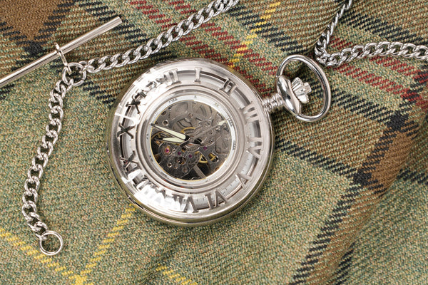 The Albany Mechanical Pocket Watch is a timeless accessory from our prestige pocket watch collection, designed to bring a traditional and distinguished finish to Highlandwear and formal dress.
